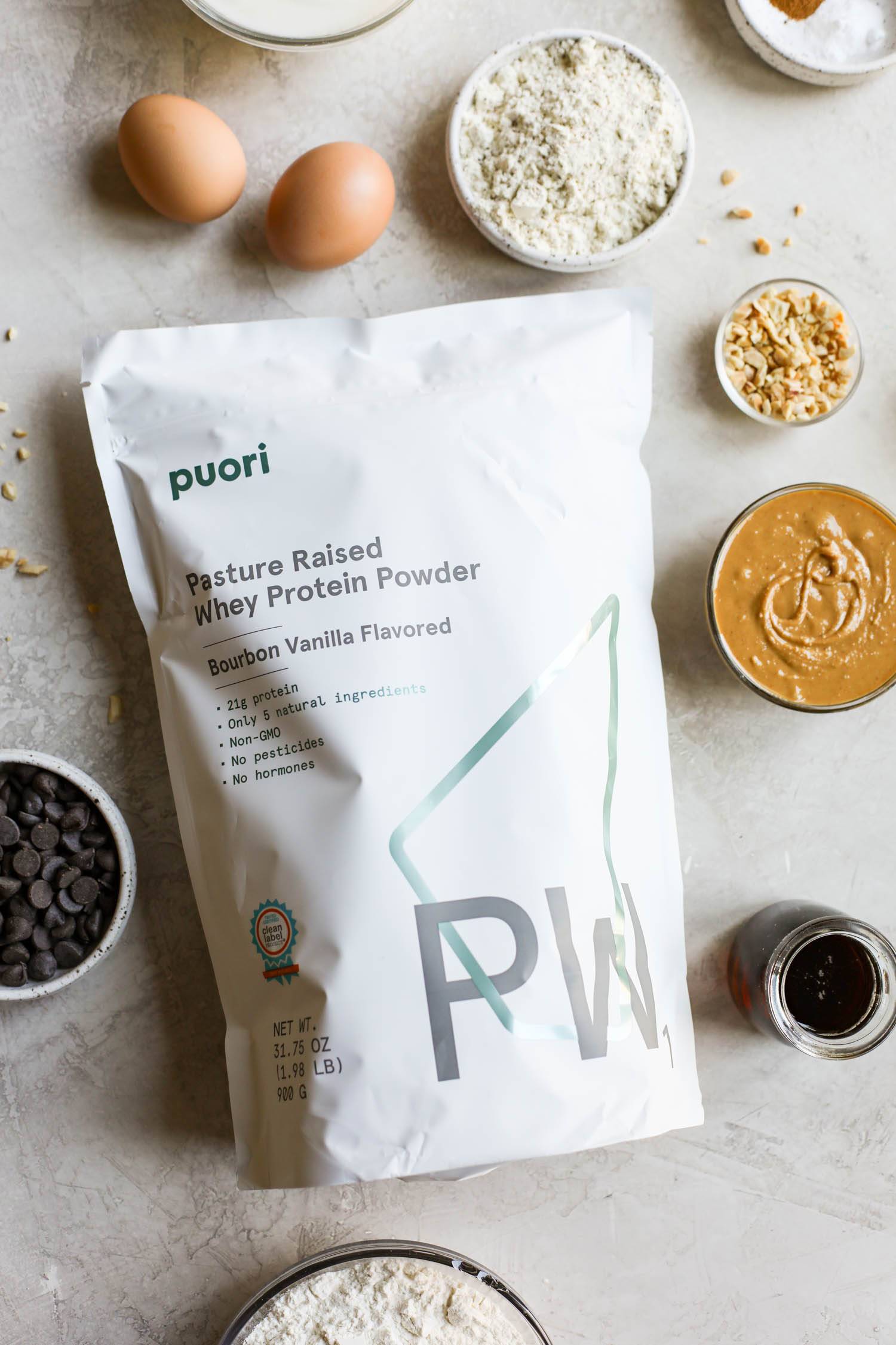 We get asked about protein powders all the time, and we have answers! One of our all-time favorite whey protein powders is Puori Whey Protein because it doesn't contain any artificial or natural low-calorie sweeteners, plus it's 3rd party tested and ranked #1 in Clean Label Project’s test of 133 protein powders from 52 brands. It's made from protein concentrate harvested from pasture-raised cows and flavored with real bourbon vanilla.